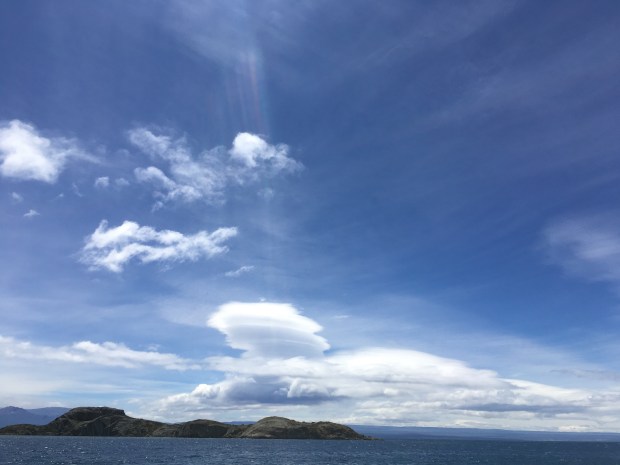 … kaum in Argentinien, wurde der Himmel heller, es wurde wärmer und vor allem in der Weite der Pampa immer windiger. Anhalten und auf einem Bein das Moped balancieren kann in die Hose gehen, weil Böen einen glatt umwerfen könnten. Die Lenticulares Türme zaubern mal wieder ein tolles Wolkenbild!