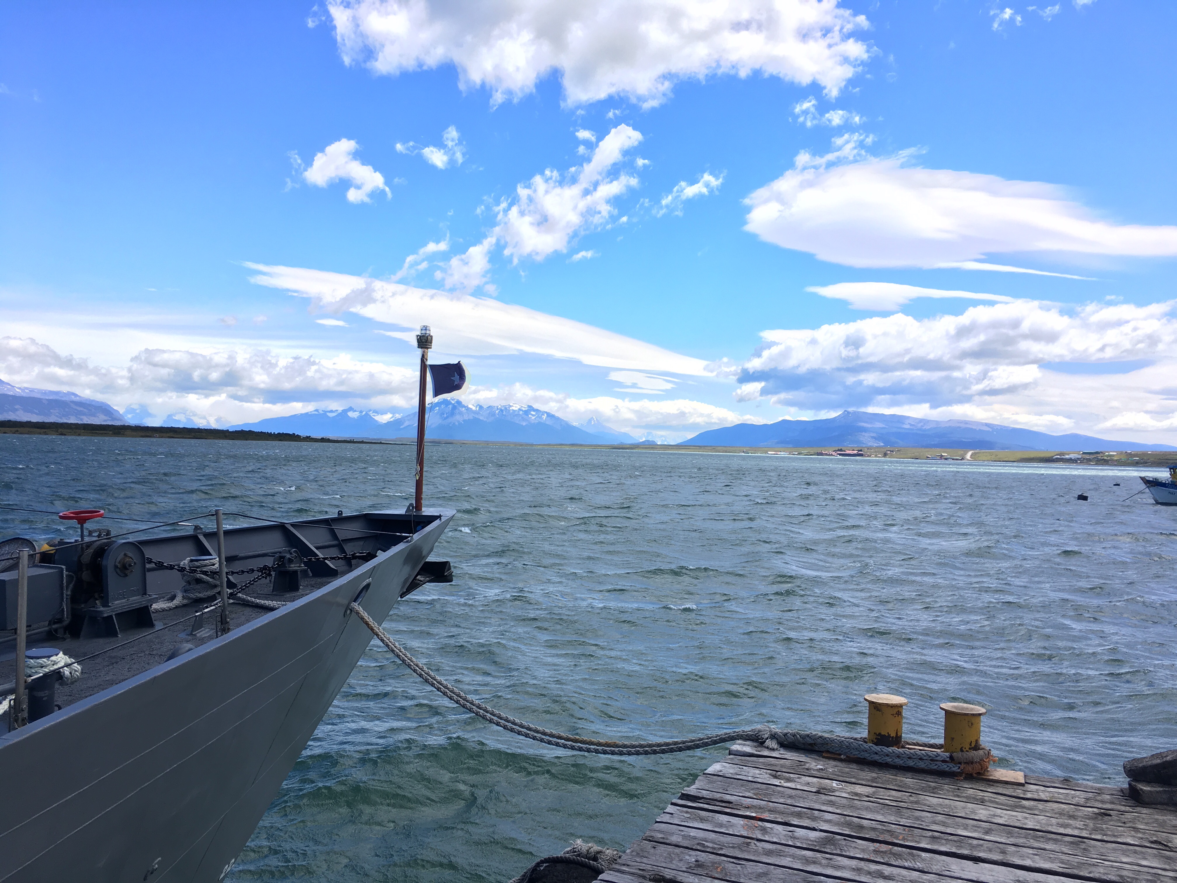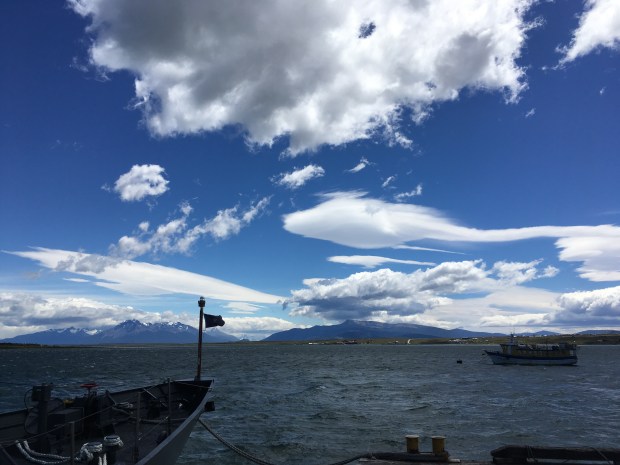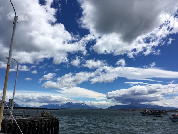 …heute gehen wir auf die Fähre. Pto Natales zeigt noch mal seine schöne Seite, viel Wind und tolle Wolken sowie ein bischen blauen Himmel…