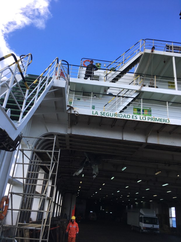 Die Navimag Fähre Evangelistas ist eingelaufen.