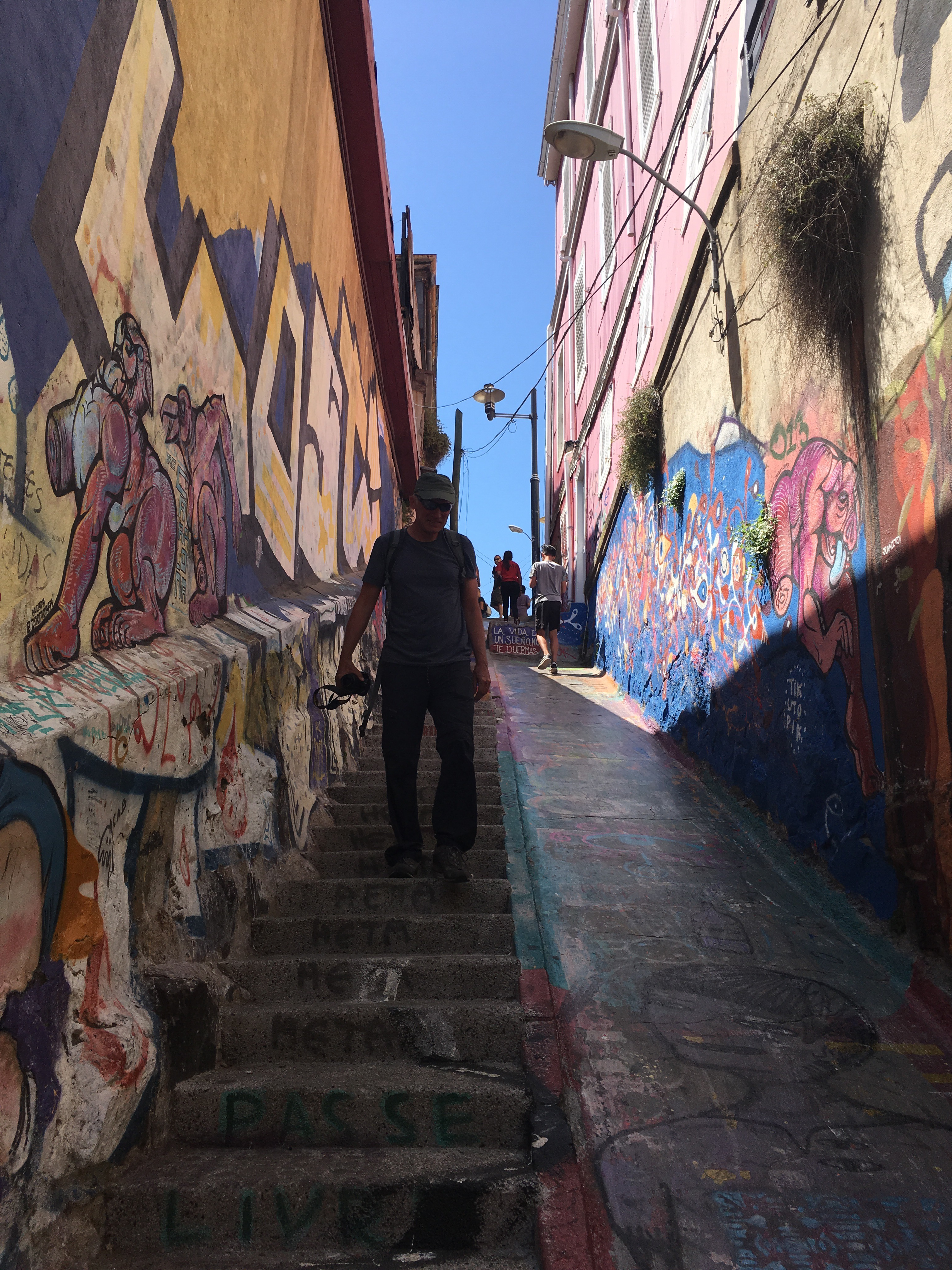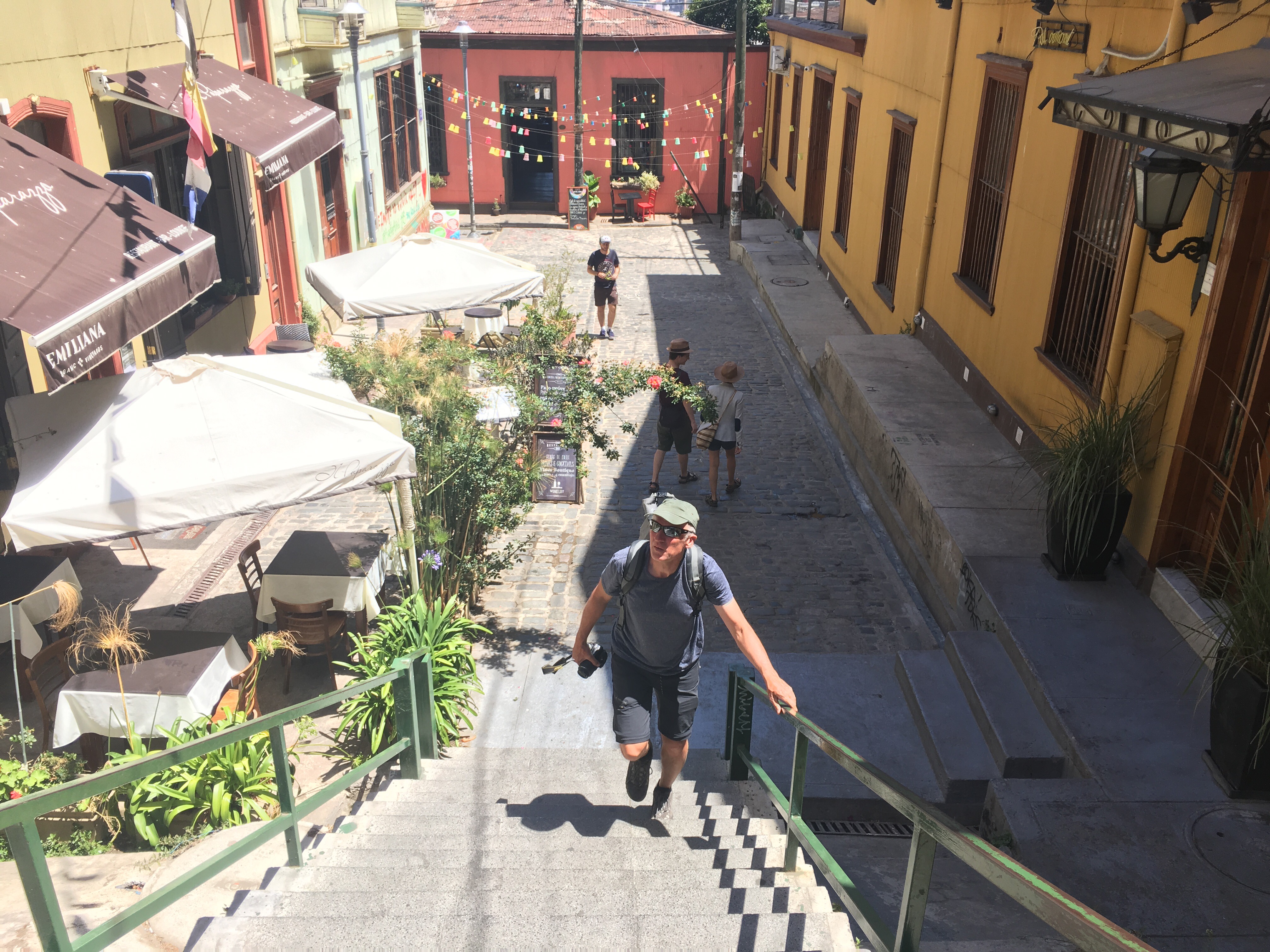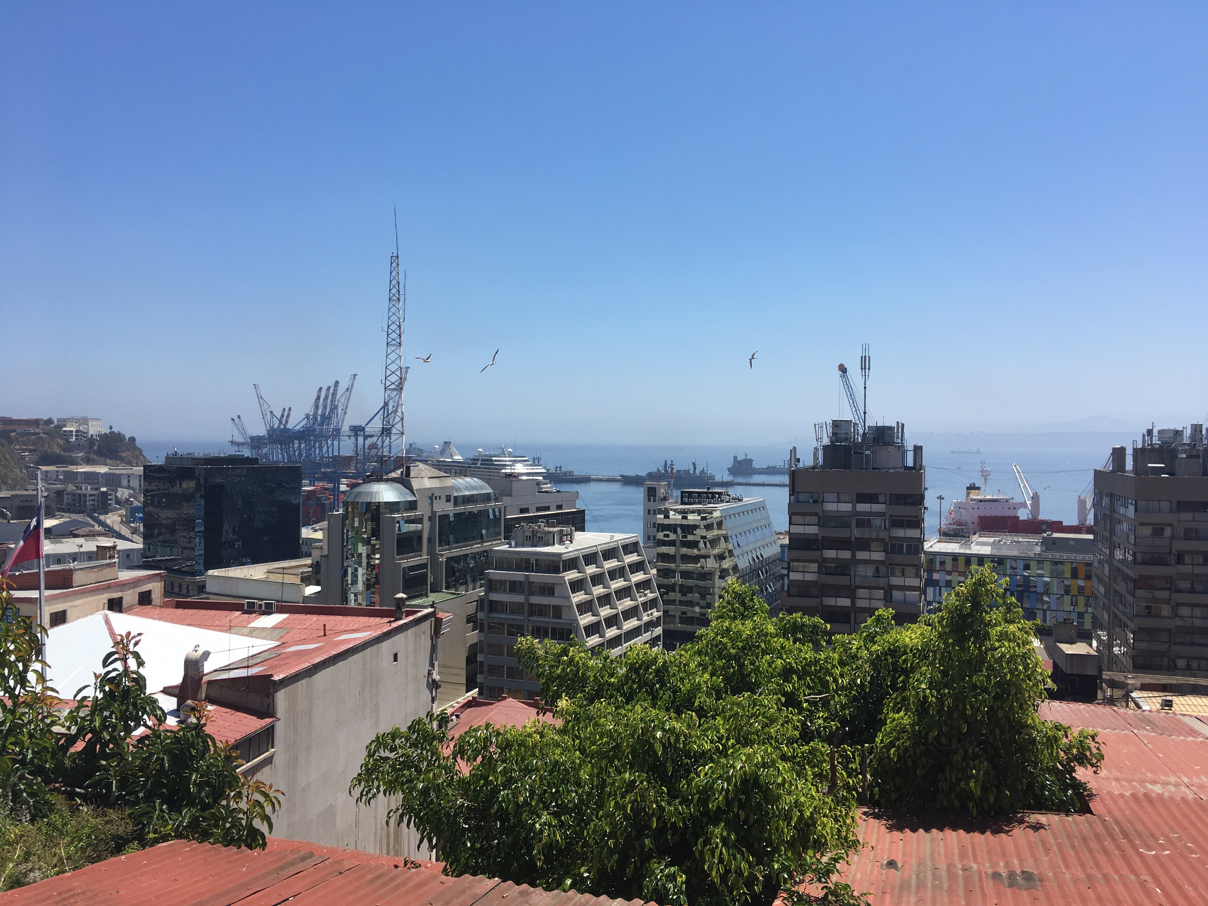 Wir haben den restlichen Tag in Valparaiso bei 22 Grad verbracht und fahren gleich zum Airport Santiago de Chile….
